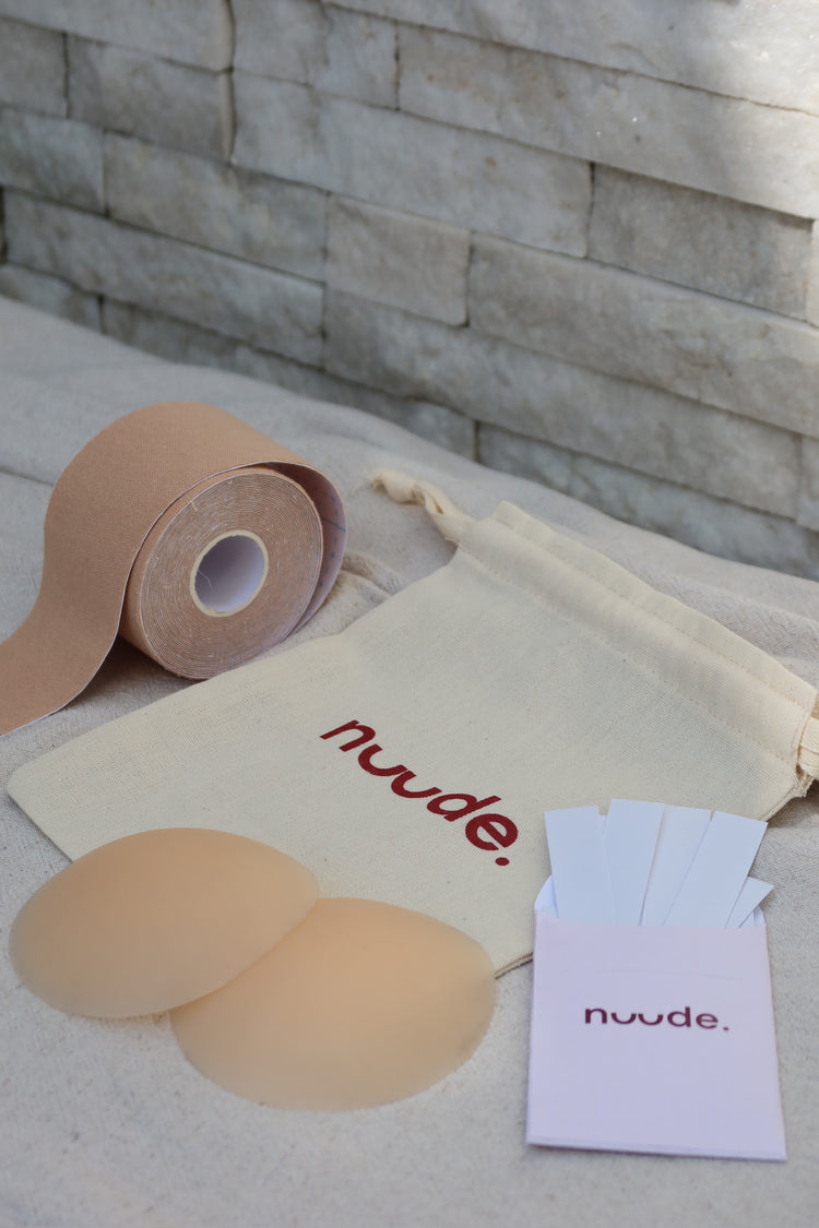 El kit más completo de nuestra línea. The Nuu Complete te da cobertura, soporte y control total del escote con una sujeción adaptable a cualquier tipo de prenda. Ideal para eventos, outfits ajustados o noches especiales.